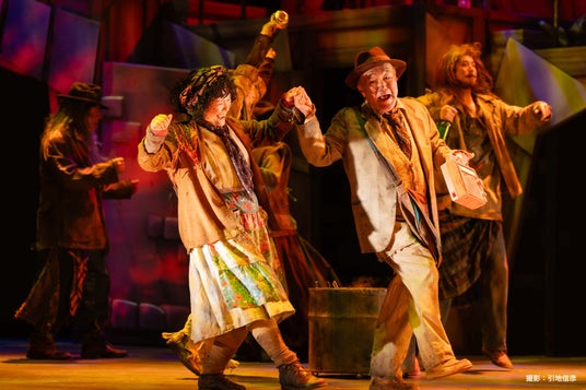 役者たちが自らの身体を駆使するステージングで効果的に魅せる場面転換は初演と同様だが、それに加え各キャストの特長をデフォルメしたカートゥーンアニメの映像を多用し、舞台装置や可動式のパネルに映したキャラクターの動きと役者本人とが絶妙なタイミングで交錯するなど、総合芸術として他に類を見ない舞台へパワーアップしている。