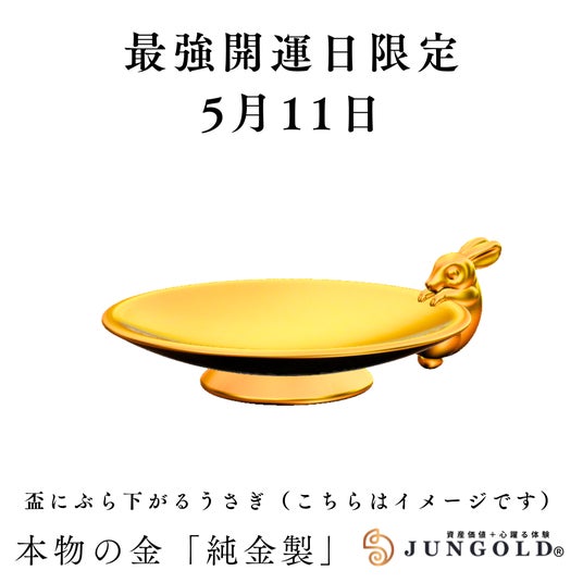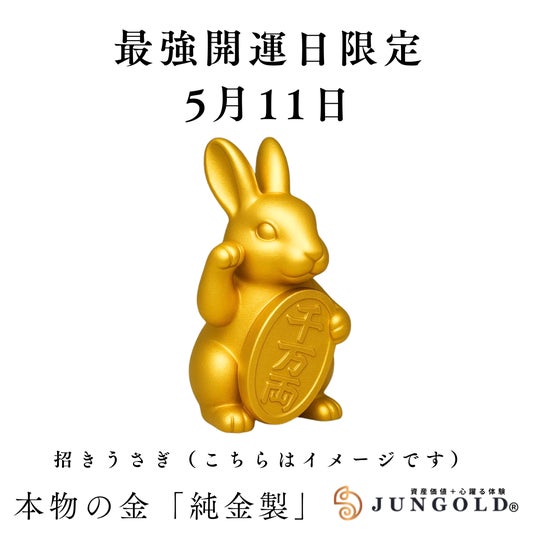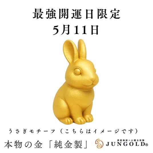 「GOLDは新時代へ」純金ブランド「JUNGOLD」は、最強開運日&金の日限定企画として、「純金」うさぎ、天赦日コインの予約販売を開始。販売期間は、最強開運日5月11日(日)のみ。