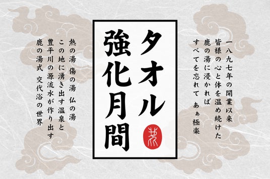 【定山渓 鹿の湯】タオル持参でポイント2倍『タオル強化月間』5月12日より開催