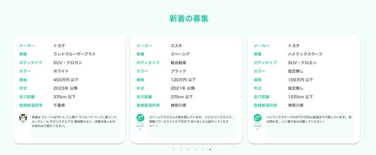 登録後は、条件に合う車両を持つ販売店や個人ユーザーからの提案を待つだけで、効率的にマッチングが可能です。