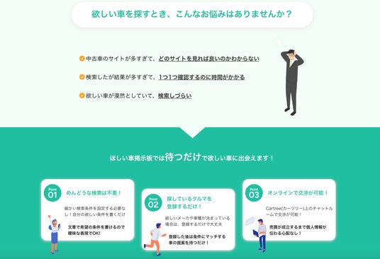 「ほしい車掲示板」は、車を「探す」から「待つ」へ――中古車探しの新しいスタンダードとして、皆さまのカーライフをより豊かにサポートしてまいります。