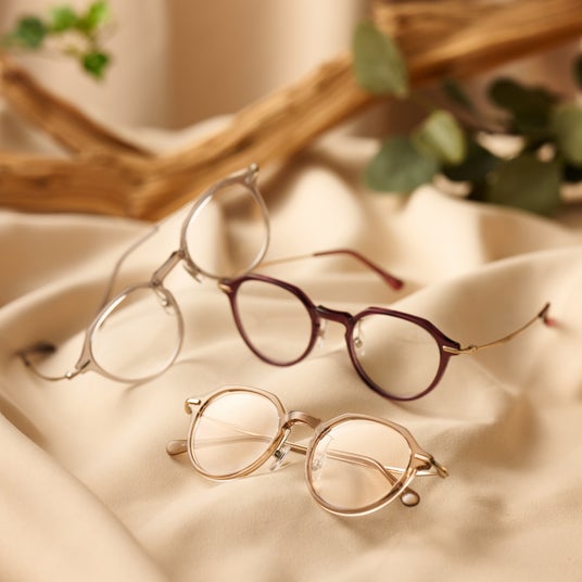 丸形シェイプで人気のボストンタイプ。トレンドデザインに艶感がミックスされてお顔に優しい明るさを演出します。