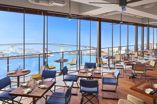 メインダイニング、ガーデンテラス、泊港を一望するカフェ&バー。別フロアには4つのバンケットが設けられ、少人数パーティーから懇親会などの大規模パーティー、セミナーや国際会議、イベントまで幅広い用途でご利用いただけます。