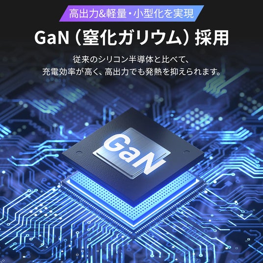 次世代半導体「GaN(窒化ガリウム)」を採用し、高出力ながら発熱を抑えた超小型ボディを実現。