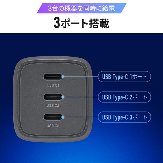 USB充電器 PD 充電器 1ポート最大67W 合計65W 3ポート Type-C×3 GaN採用 超小型 折りたたみ式プラグ 急速充電 スマホ タブレット PSE適合商品
