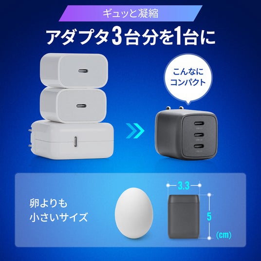 超小型サイズなのにUSB Type-Cが3ポート搭載!PD最大67W対応のUSB充電器を発売