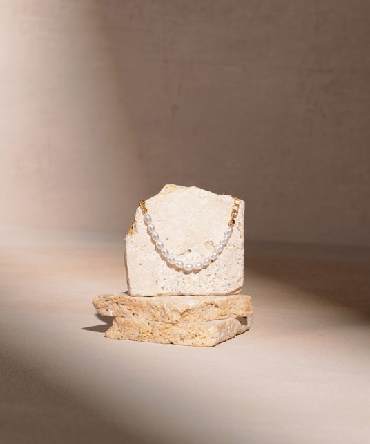 ブレスレット:ゴールドとパールを組み合わせたブレスレットはどんなファッションにも合わせやすく、手元にトレンド感を出してくれます。お手持ちのブレスレットや時計と重ねて。
