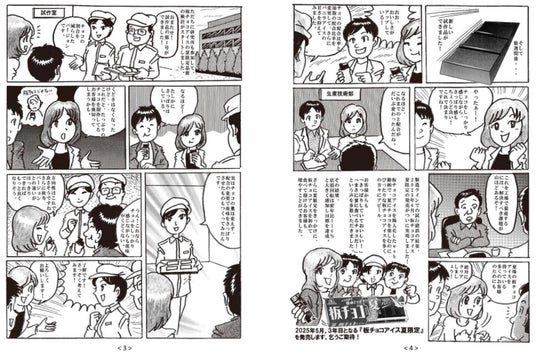 「板チョコアイス」は、1995年にチョコレートが主役のアイスとして誕生し今年30周年です。当初は、秋冬限定で発売していました。2020年から通年発売しましたが、夏の売れ行きは芳しくありませんでした。そこで、暑い夏に食べるのにぴったりな夏限定品質の「板チョコアイス」を企画し、2023年に初めて発売したところ、大人気に。今年が3年目の発売となります。今年は「板チョコアイス<夏限定>」の開発秘話を紹介する漫画で、夏限定品質のこだわりもお伝えしていきます。