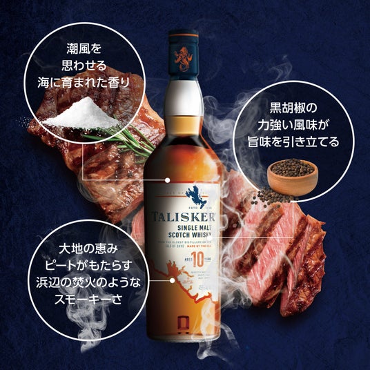 香ばしくローストした肉料理と共に味わえば、互いの力強い旨みを引き立て合い、一口食べればまた飲みたくなる、一口飲めばまた食べたくなる、タリスカーならではのペアリングをお楽しみいただけます。