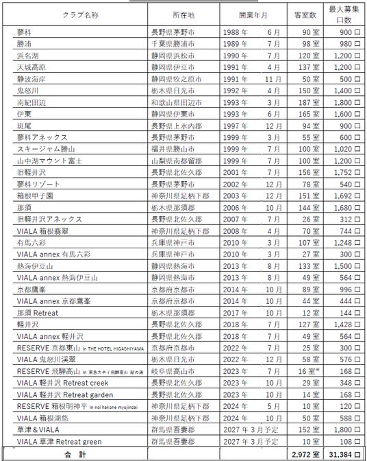 東急ハーヴェストクラブの施設一覧