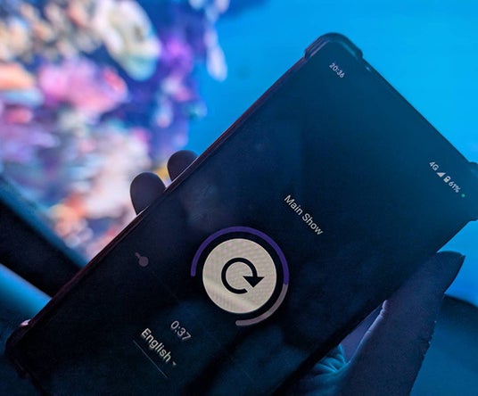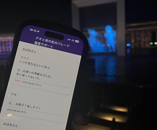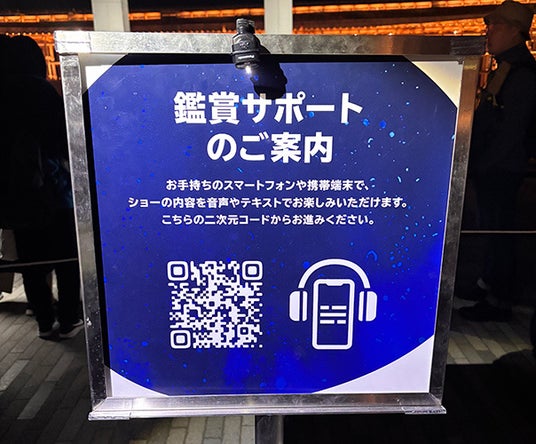 大阪・関西万博では、当社が開発した「おもてなしガイド」が、会場内やパビリオンでも採用されています。開催されるショーやイベントと同期して翻訳テキストや音声によるガイドを自動配信するもので、外国人や聴覚障がい者の方は無償で同サービスを利用することができ、好評を得ています。導入されている主なショーやパビリオンは以下の通りです。水と空気のスペクタクルショー「アオと夜の虹のパレード」