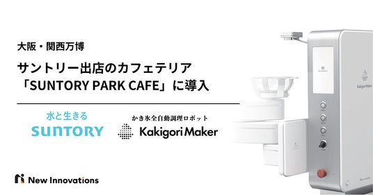 株式会社New Innovations(本社:東京都江東区、代表取締役 CEO 兼 CTO:中尾 渓人、以下「New Innovations」)は、サントリーホールディングス株式会社(本社:大阪市北区、代表取締役社長:鳥井 信宏、以下「サントリー」)が2025年日本国際博覧会(大阪・関西万博)に出店するカフェテリア「SUNTORY PARK CAFE」に、かき氷の全自動調理ロボット「Kakigori Maker」を設置しました。
