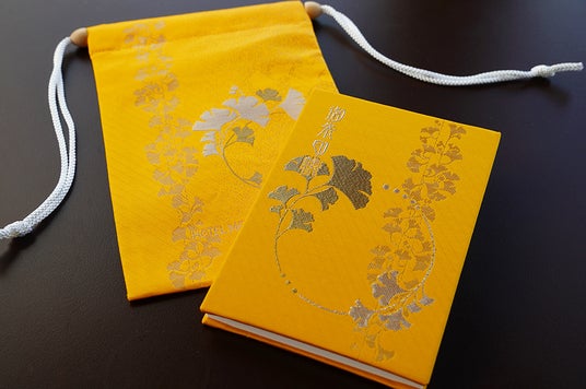 ホテルメトロポリタン 鎌倉オリジナル御朱印帳、御朱印帳袋付き光の加減によって奥深い色合いを見せる西陣織でつくられた生地と、華やかな金や銀の糸を使用した銀杏のデザインで仕上げた、当ホテルでしか手に入らない御朱印帳と収納袋のセットです。御朱印帳・収納袋共に、裏面にはホテル名が刺繍されています。