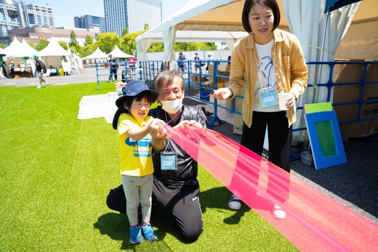 - 水滴を運べ!撥水メッシュチャレンジ:5mのメッシュを友達や家族で持ち、スタートからゴールの穴に水滴を通すチャレンジ。