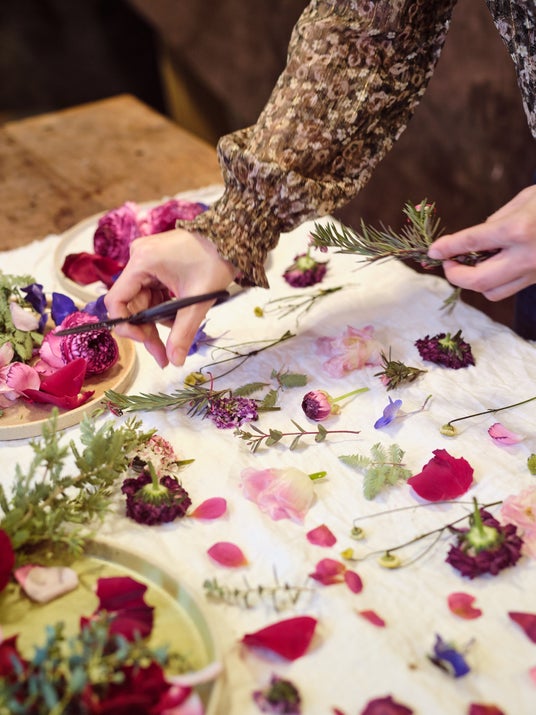 お花を丁寧に1枚ずつ押した押し花が、日常に溶け込むコラボレーションアイテム。