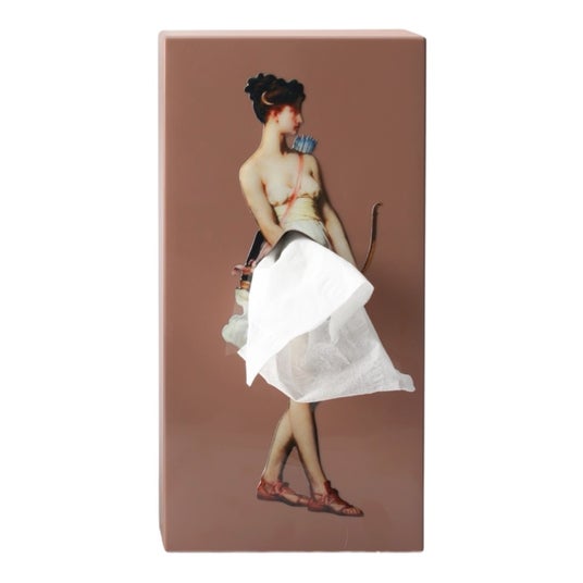 “暮らしに神話を。”そんな想いを込めて生まれたこのシリーズは、ギリシャ・ローマ神話に登場する女神たちをモチーフにした置き型ティッシュケース。ティッシュがふんわりと広がる姿は、まるで女神のスカートのよう。使うたびに、まるで神話のワンシーンに触れるような体験が広がります。