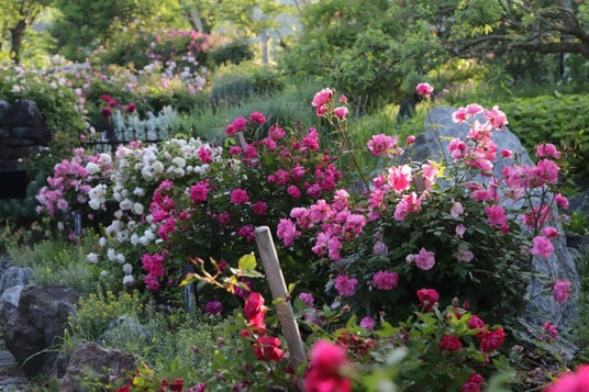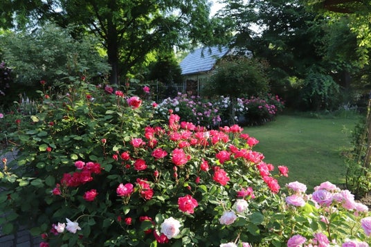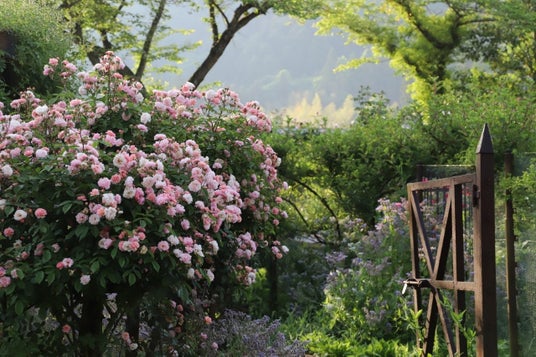 神秘的な朝バラが始まりを告げる!花と緑が奏でる湖国の庭園「ローザンベリー多和田」にバラと宿根草の美しい世界が広がります