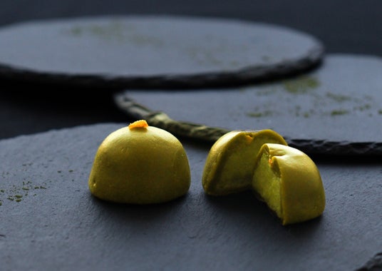 白餡、白味噌、日本酒など宮城の食材をふんだんに使用した特製の“ずんだ餡”を、伊達茶を使用したもちもちの生地で包みました。五つの素材が織りなす味わいは、コンフィチュールアッシュ仙台店らしい伝統と革新が共鳴します。