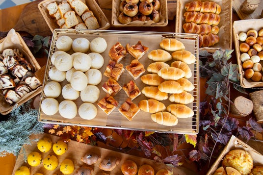 毎朝店内併設のベーカリー工房で焼き上げるこだわりのパンは、何度でも楽しんでいただけるように、お食事に合うパンから甘いクロワッサンや生ドーナツまでバラエティ豊かなラインナップをご用意しております。ランチ限定で食べ放題の自家製パンを思う存分お楽しみください。