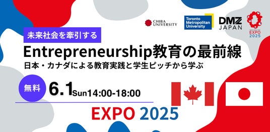 2025年6月1日(日)、大阪・関西万博カナダパビリオンにて、トロントメトロポリタン大学(TMU)と千葉大学による共同イベント「未来社会を牽引する Entrepreneurship 教育(起業家/企業家教育)の最前線 ― 日本・カナダによる教育実践と学生ピッチから学ぶ」を開催いたします。