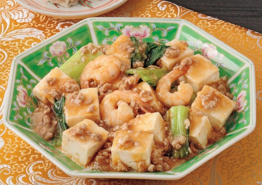 ひき肉やえびが入った具だくさんの麻婆豆腐。