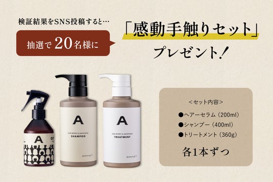 本特別セットをご購入後、商品を使用した「検証結果」をSNSにご投稿していただくと、抽選で20名様に、ans.craftシリーズ商品を詰め込んだ「感動手触りセット」をプレゼントする企画も開催いたします。