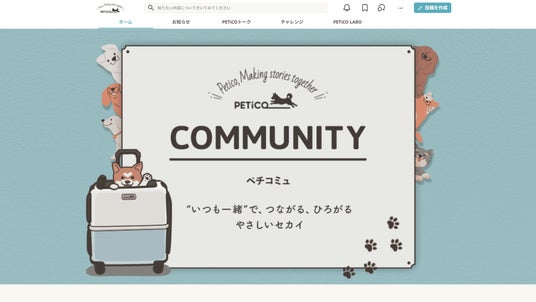『ペチコミュ』は、愛するペットと”いつも一緒にいたい“と思っている人ならどなたでも参加できるコミュニティーです。ペットとの大切な思い出やおすすめ情報の共有などを通して、みんなで“いつも一緒をかなえる”ためのアイデアや可能性について、気軽に楽しく会話しながら交流するサイトで、主に「PETiCOトーク」「PETiCO LABO」の2つのスペースで構成しています。日々のログインや投稿、投稿へのリアクションや各種チャレンジによってポイントが貯まり、会員ランクがアップするシステムを採用。ランクに応じた各種特典もご用意しています。