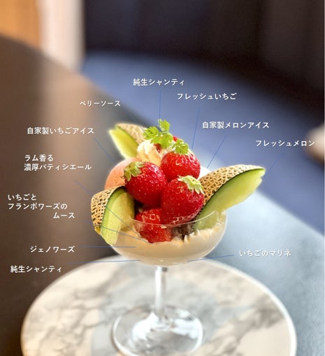 とびきり甘くジューシーな、まさに今が旬のメロンと、旬を終えつつあるいちごが出会う、奇跡の瞬間を味わえるのは 今この時期だけ。