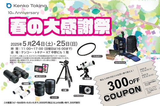 株式会社ケンコー・トキナー(本社:東京都中野区 代表取締役社長:櫻井 匡)は、2025年5月24日(土)・25日(日)、ケンコー・トキナー KT中野ビルにて『春の大感謝祭』を開催いたします。