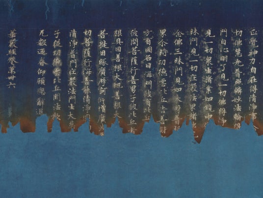 重要文化財 華厳経 巻第四十六(二月堂焼経)(部分) 1巻 紺紙銀字 日本・奈良時代 8世紀 根津美術館蔵