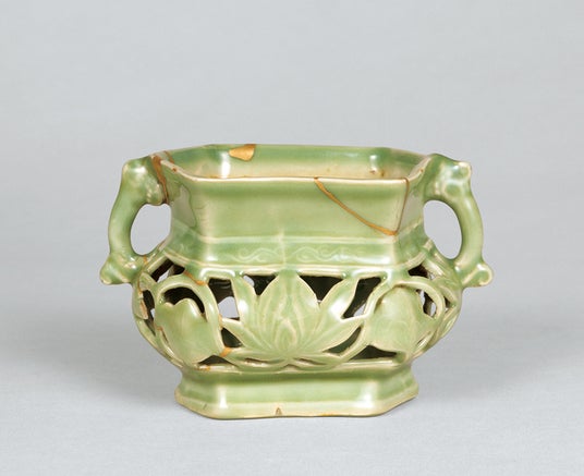 青磁透彫二階香炉 龍泉窯 1口 中国・元時代 14世紀 根津美術館蔵