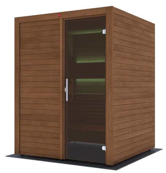 スペースが限られていても実現できる本格フィンランド式サウナ。96センチ角の最小モデル商品名:ソポ0909PF