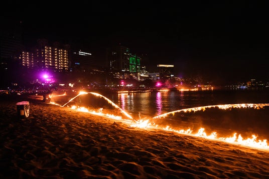 海岸線をまるごと燃やすスケールの炎演出。数百メートルにわたる海岸を炎で繋ぐ試みを再び!