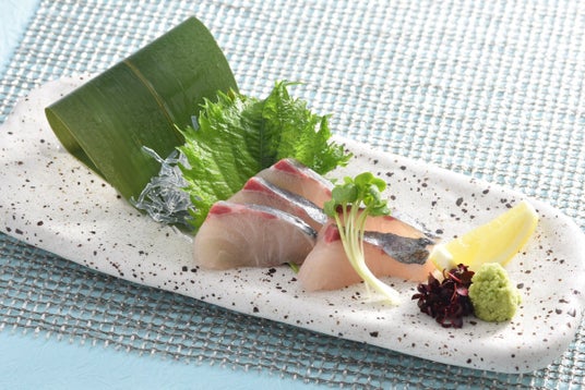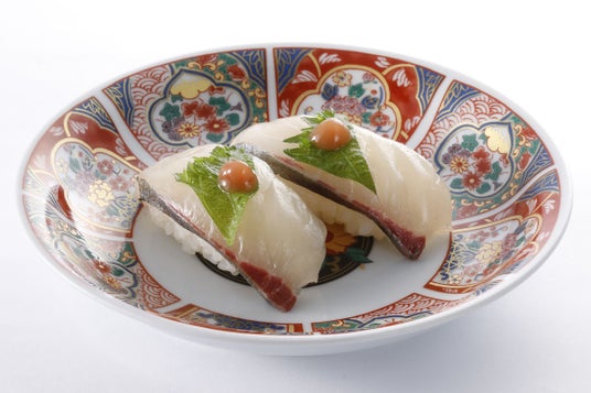 外見は青魚ですが、白身魚とアジの中間のような、両方の美味しい部分を兼ね備えている味わいの『縞鰺』には梅肉としそを添えて、さっぱりとお召し上がりいただきます。