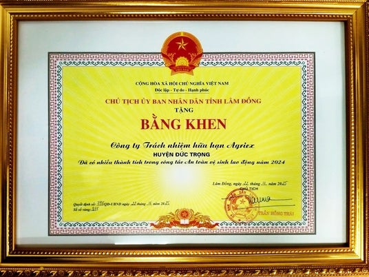 今回の表彰は、職場において労働安全衛生の法令を適切に実施し、顕著な成果を挙げた企業に対して、ラムドン省人民委員会から授与されるものです。