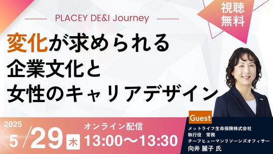 【参加無料】メットライフ生命登壇!5月29日開催PLACEY DE&I Journey「変化が求められる企業文化と女性のキャリアデザイン」 ❘ セミナーインフォ