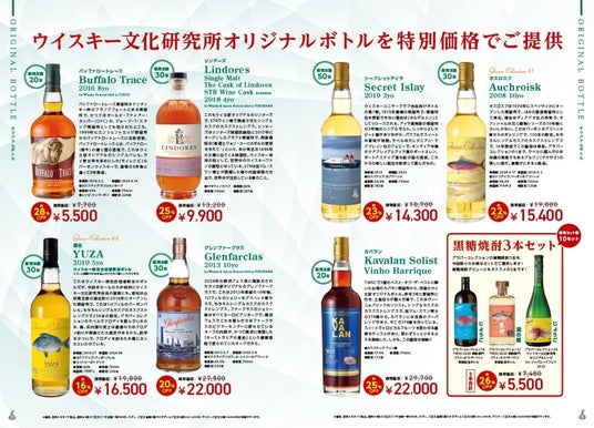 ウイスキー文化研究所オリジナルボトルや書籍、その他ウイスキー関連グッズなど、計74アイテムをお得なお値段でご購入いただけます。