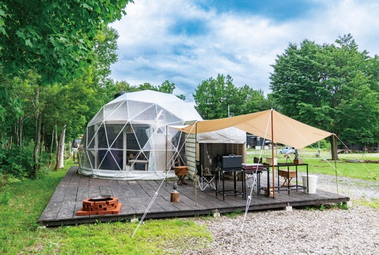 ビジネスキャンプ北海道の会場は、世界有数の観光地である北海道・ニセコの羊蹄山の麓に位置しています。夏でも爽やかな気候が特徴で、子どもたちはのびのびと活動でき、保護者の皆様は快適なひと時を過ごしていただけます。また、自然を楽しむ通常のテントに始まり、プロジェクター&エアコン付きのドームテント、専用サウナが付いた特殊なバンガローまで、高規格の設備が整っています。世界中の外国人観光客を唸らせるニセコの高級グランピング場を、贅沢に貸切にしました。
