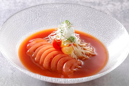 トマトをふんだんに使用した、今夏限定の冷麺。オリジナルのトマトスープには、アクセントとしてスイートチリソースと鰹節の旨みをプラスしました。トマトの酸味と甘みが食欲をそそる、暑い夏の日におすすめの一品です。