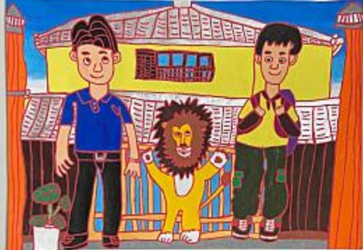 2歳のとき知的障がいを伴う自閉と診断され、小学5年生の時に母親のすすめで、絵画教室に通いはじめ、才能を発揮します。色を塗りこむ細かな作業も、鼻歌まじりでひょうひょうと進めます。
