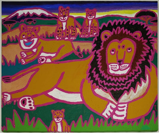 会場では、その「ライオンの隠れ家」で使用された原画5作品をはじめ、約20点の絵画を展示いたします。また、画集や雑貨などを販売するほか、作家本人によるライブペイントも実施いたします。