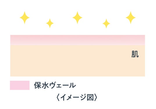 すすぎ時に保水カプセルがとろけ、すすいだ後、保水ヴェールとなって肌に密着。