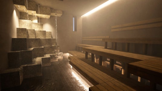 湿度たっぷりの滝サウナはまるで鍾乳洞にいるかのような特別な体験。自然の石には水が流れ、定期的に滝のような水が出ることで滝行ができます。水脈豊かな富津の湧き水を全身で感じるサウナです。