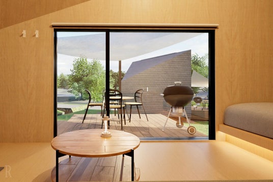 全棟、室内とウッドデッキがシームレスにつながる開放的な設計。大きな窓からは、四季折々に表情を変える里山の風景を楽しめます。冷暖房、Wi-Fi、Bluetoothスピーカーを完備しており、快適な滞在をサポート。ウッドデッキ下には焚火台をご用意しており、プライベートな空間で、焚火の炎に癒されるひとときをお過ごしいただけます。
