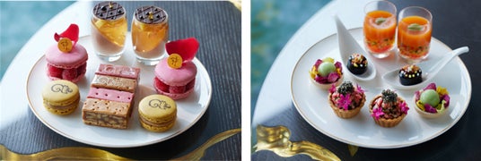 スイーツメニューは「イスパハン」「マカロン クルミッ子」「クルミッ子」「イスパハン クルミッ子」の人気スイーツに加え、ウェスティンホテル横浜エグゼクティブペストリーシェフ白山隆浩による、ホワイトローズティーのジュレとショコラクリームに国産マンゴーを添えたグラススイーツをラインナップ。セイボリーには、「アボカドとブラータチーズ」「赤ワインとオレンジのゼリー クルミのキャラメリゼ」など、初夏にふさわしい彩り豊かな4品を取り揃えました。