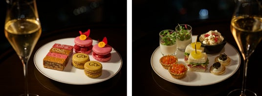 夕暮れ時には、「アフタヌーンティー with 鎌倉紅谷 & ピエール・エルメ・パリ」のスイーツと、お酒に合わせた軽やかなセイボリーを組み合わせた、アペリティーボスタイルのプランをご用意しています。