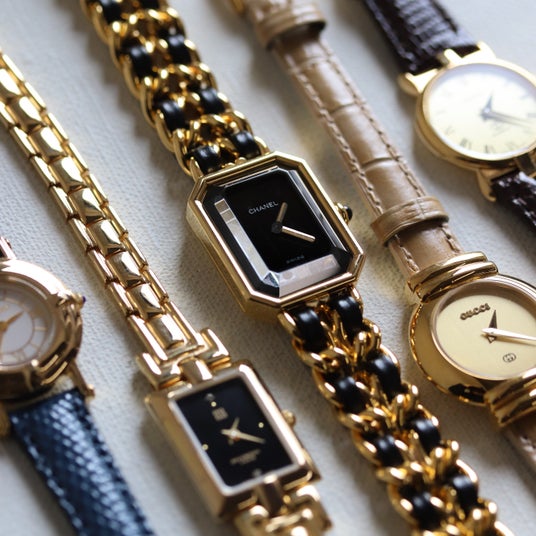 昨今トレンドとなっているヴィンテージ時計やアクセサリーも、cui-cuiではいち早く取り入れてきました。大手オークションを手がける会社から「cui-cuiらしい」と感じたヴィンテージアイテムだけをセレクトし、ジュエリーとのコーディネート提案も行っています。