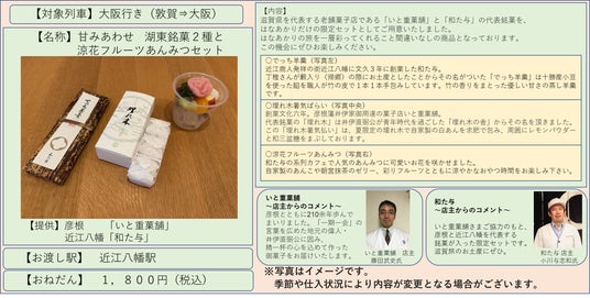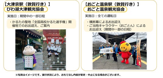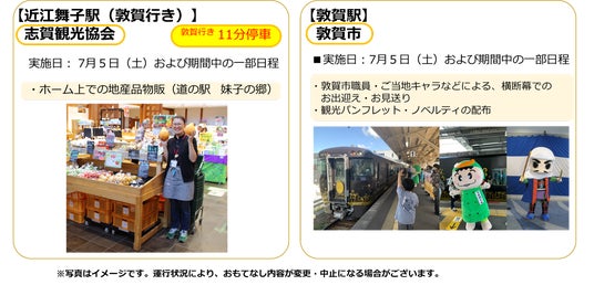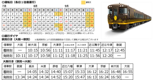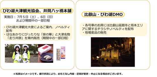 観光列車「はなあかり」は、2025年夏季は大阪から琵琶湖沿線を経て敦賀まで運行します。このたび、一部の日程で実施する駅および車内でのおもてなし、ならびに車内で展示する調度品の詳細が決まりましたのでお知らせします。