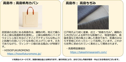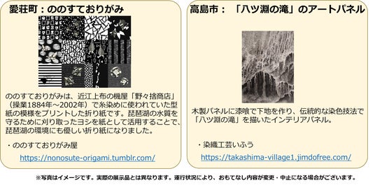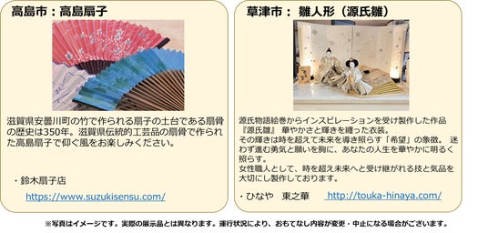 運行期間中、1号車(スーペリアグリーン車)の飾り棚などに滋賀県ならではの工芸品・アート作品を展示します。
