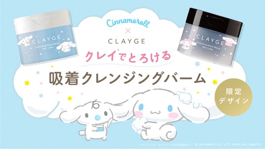 こだわりのクレイ成分を配合したプロダクトで、毎日の生活に癒しを届ける、ヘアケア・スキンケアブランドの『CLAYGE(クレージュ)』の人気定番商品の『クレンジングバーム モイストN』、『クレンジングバーム ブラックN』がシナモロールとコラボレーション。